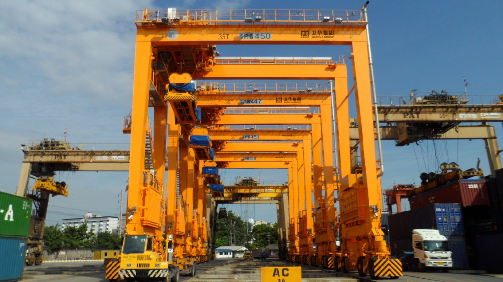 1、 輪胎式集裝箱門式起重機(jī)是集裝箱貨場(chǎng)進(jìn)行堆碼作業(yè)的專用機(jī)械,廣泛應(yīng)用于港口碼頭及集裝箱貨場(chǎng)。