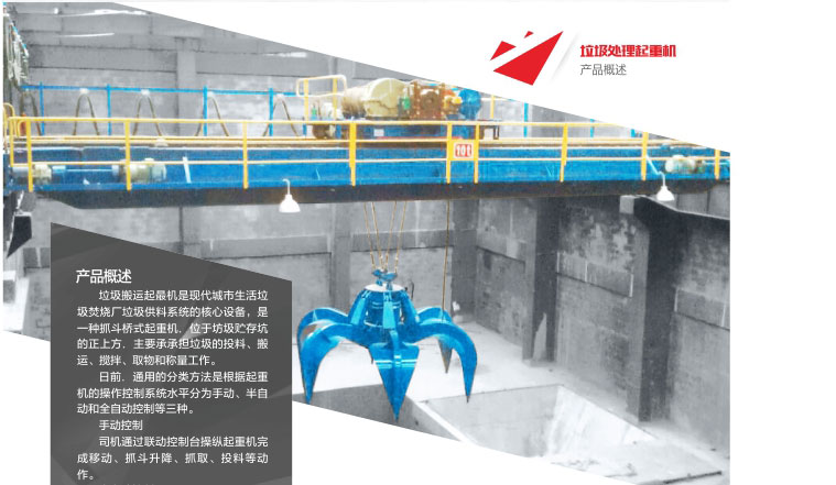 1、垃圾抓斗起重機(jī)是現(xiàn)代城市各種垃圾焚燒發(fā)電廠垃圾供料系統(tǒng)的核心設(shè)備,位于垃圾儲(chǔ)存坑的上方,主要承擔(dān)對(duì)垃圾的投料、搬運(yùn)、攪拌、取物和稱重等作業(yè)。
