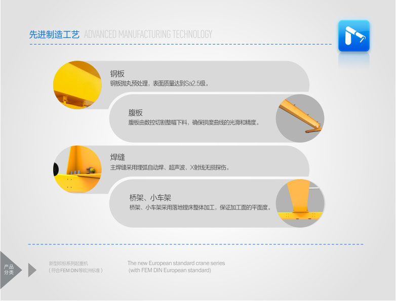 2、   該產(chǎn)品技術(shù)**,設(shè)計按照國際標(biāo)準(zhǔn):DIN(德國)、FEM(歐洲)、ISO(國際),具有剛性強(qiáng)、自重輕、結(jié)構(gòu)設(shè)計出眾等優(yōu)點(diǎn),能有效地節(jié)約廠房空間和投資成本,行走結(jié)構(gòu)特點(diǎn)獨(dú)特,是您*佳的選擇。